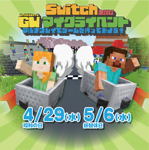 今回のGWマイクライベントは、マイクラの世界でレースゲームを制作します!